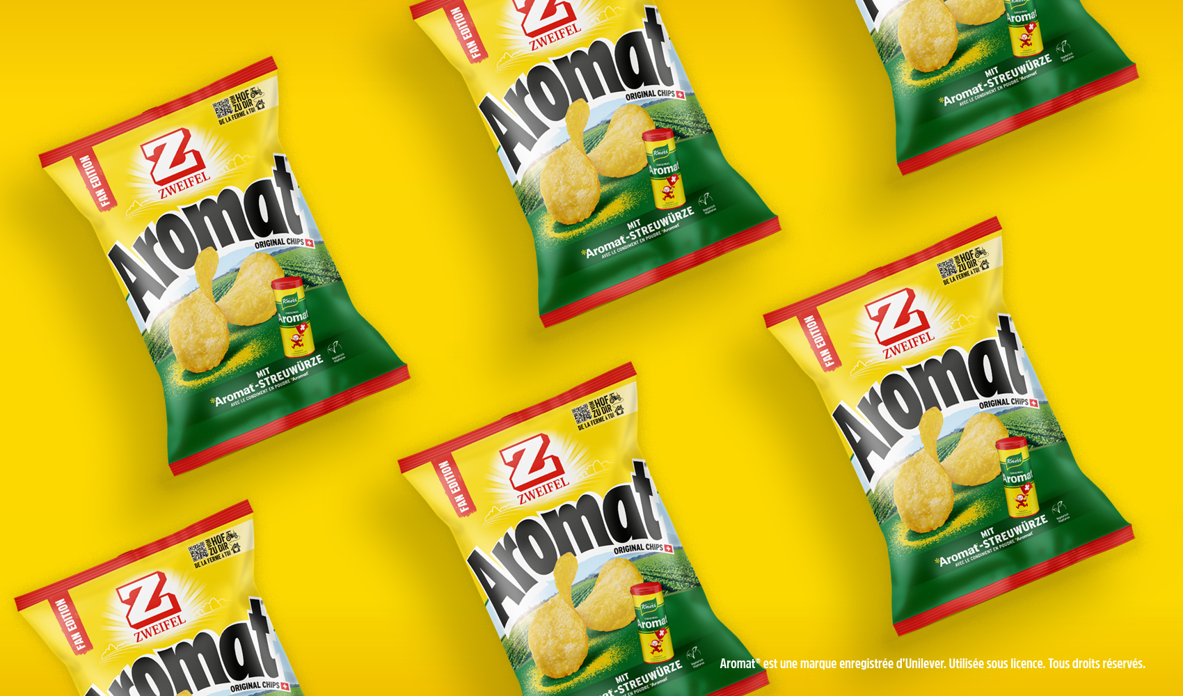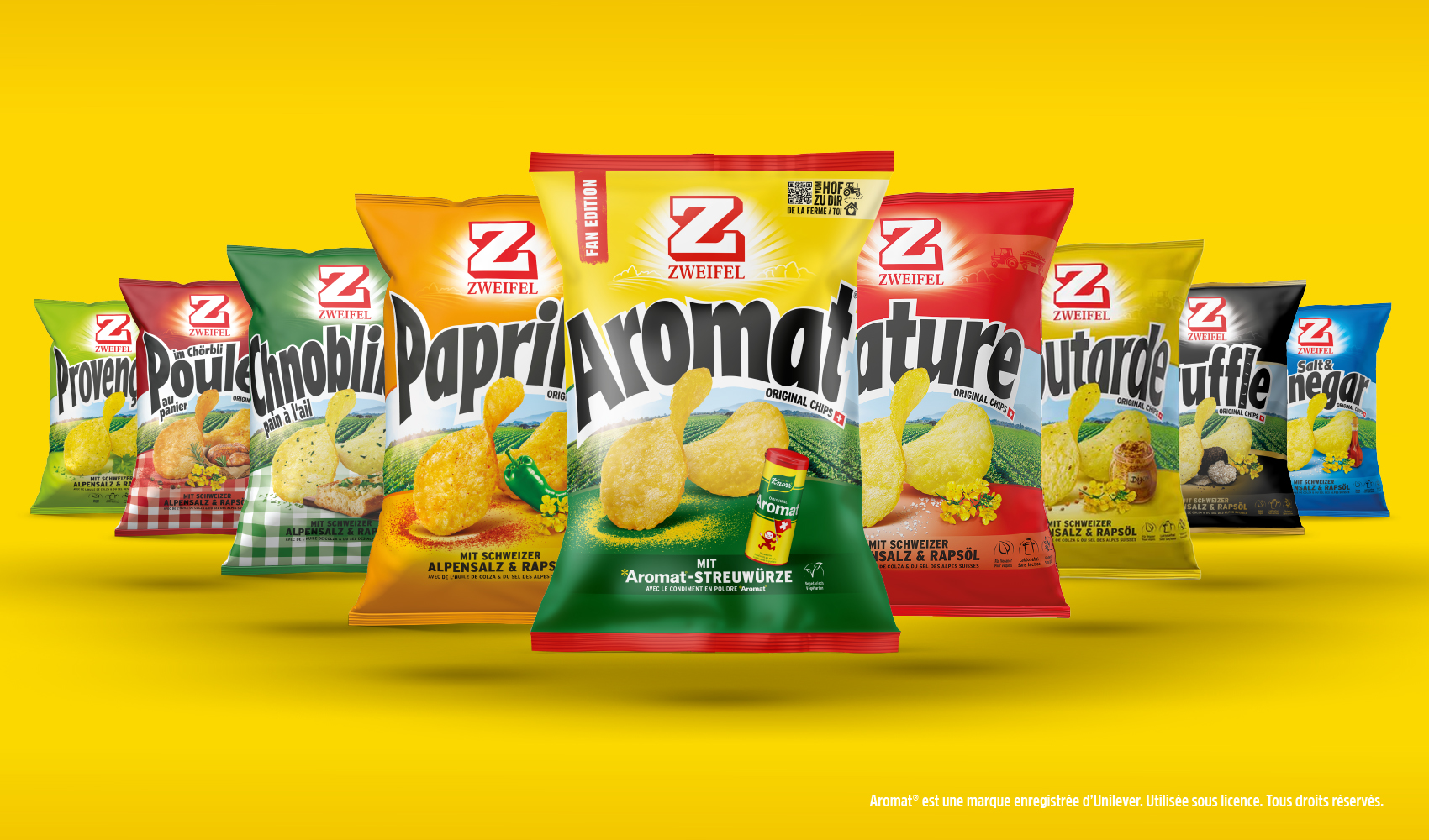 Sur les œufs à la coque, dans la sauce à salade et partout où on veut améliorer un peu le goût, Aromat® d'Unilever Suisse a sa place en Suisse depuis les années 1950, comme nos chips à l'apéritif. Aujourd'hui, deux produits culte se rencontrent pour donner naissance à un nouveau produit au goût on ne peut plus familier.